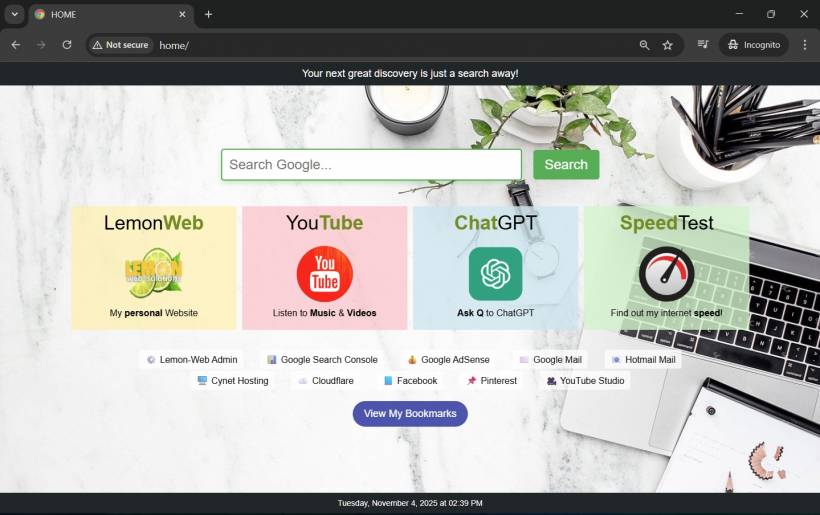 In the screenshot above, you'll see icons like Lemon-Web Admin, Google AdSense, Cloudflare, and YouTube Studio, all neatly aligned beneath the main tiles. It feels natural, efficient, and gives your homepage a cleaner, more organized vibe.