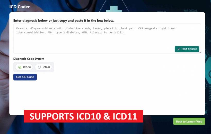 ICD Coder isn't just another coding lookup tool. It's built to bridge human language with global medical standards like ICD-10 and ICD-11. Whether you type your diagnosis in English, Malay, or a mix of shorthand and local slang, the system instantly interprets your input and delivers accurate, WHO-verified codes in seconds.