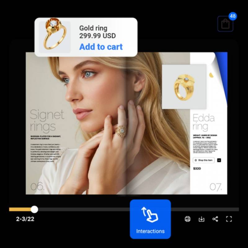 An interactive catalog flips that whole experience. You can publish it online, update it anytime, and turn "just browsing" into actual clicks that lead to enquiries or purchases. Instead of a static PDF that people scroll and forget, you get something closer to a mini product experience: page-flip reading, buttons, videos, forms, links to your store, even embedded shopping in some cases.
