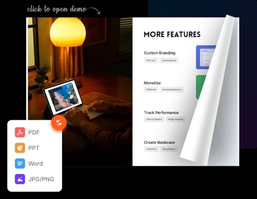 FlipHTML5 is for creators who want a modern catalog feel with lots of customization options. It supports importing from PDFs, PowerPoints, or images, then enhances the experience with interactive elements. What makes it feel "current" is its AI-driven add-ons: text improvement, image generation, and features that help you enrich content quickly. It's also flexible for adding media and engagement features like video or chatbot-style elements.