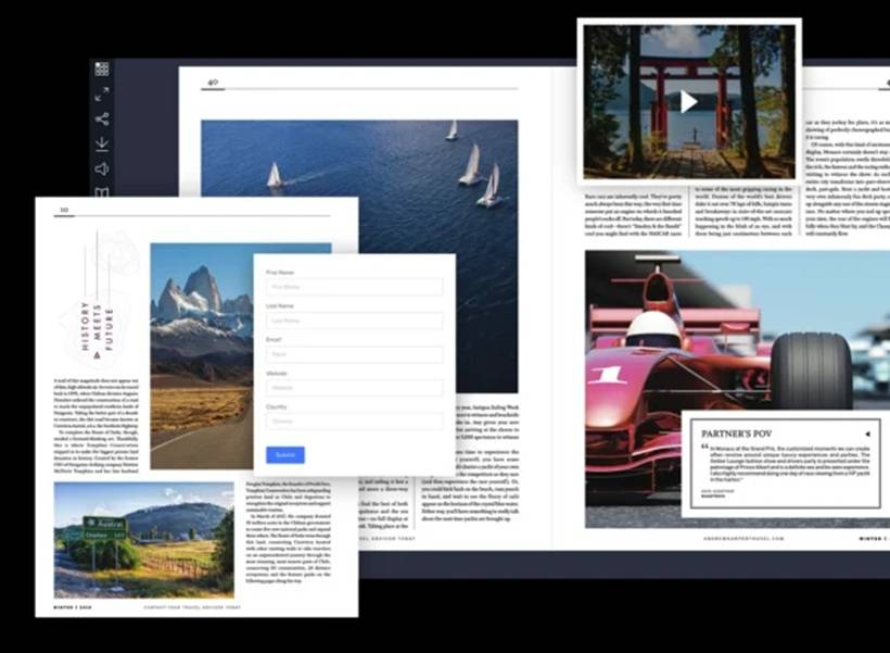Joomag is for people who want the whole pipeline in one place: create, publish, distribute, track performance, and even monetize. You can start by uploading a PDF, then layer on interactive elements like videos, links, hotspots, and forms. It also leans into marketing and analytics, so you're not publishing blind.