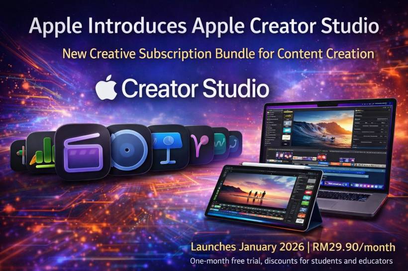 Apple Creator Studio will launch on 29 January 2026, with pricing set at RM29.90 per month or RM299 per year. New subscribers will receive a one-month free trial to explore the full suite.