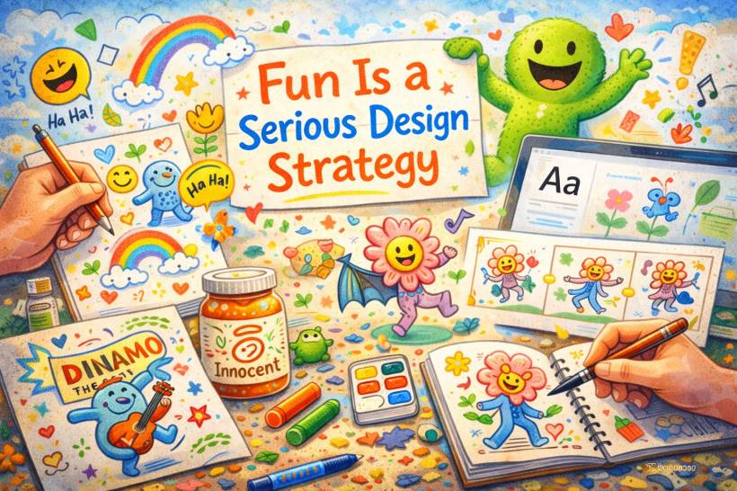 More designers are intentionally building in playfulness — mixing rough drawings with sleek digital layouts, adding quirky storytelling moments, using animation to exaggerate movement and embracing illustrations that feel alive rather than static.