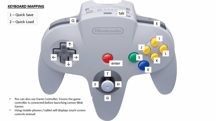 Lemon Web Solutions has made this N64 classic accessible directly in your browser, no downloads or emulators required. The game runs smoothly in both desktop and mobile environments, with solid frame rates and responsive controls.