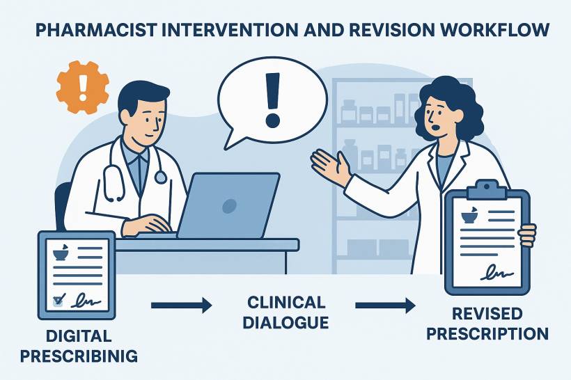 In the paper era, such interventions were scribbled notes or phone calls. In a digital environment, they become structured events. The pharmacist flags the issue in the pharmacy module, which sends a notification to the prescriber's queue. The doctor reviews the suggestion, edits the prescription if necessary, and re-signs the new version digitally.