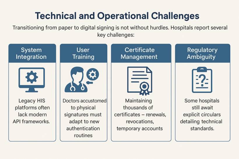 Transitioning from paper to digital signing is not without hurdles. Hospitals report several key challenges: