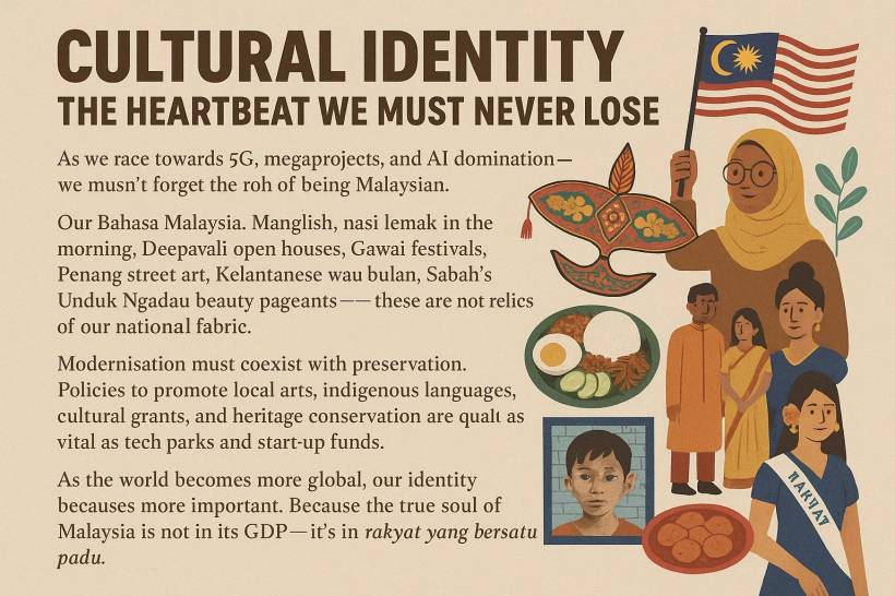 As the world becomes more global, our identity becomes more important. Because the true soul of Malaysia is not in its GDP — it's in rakyat yang bersatu padu.