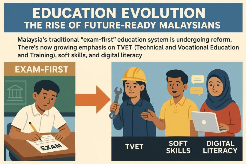 Malaysia's traditional "exam-first" education system is undergoing reform. There's now growing emphasis on TVET (Technical and Vocational Education and Training), soft skills, and digital literacy.