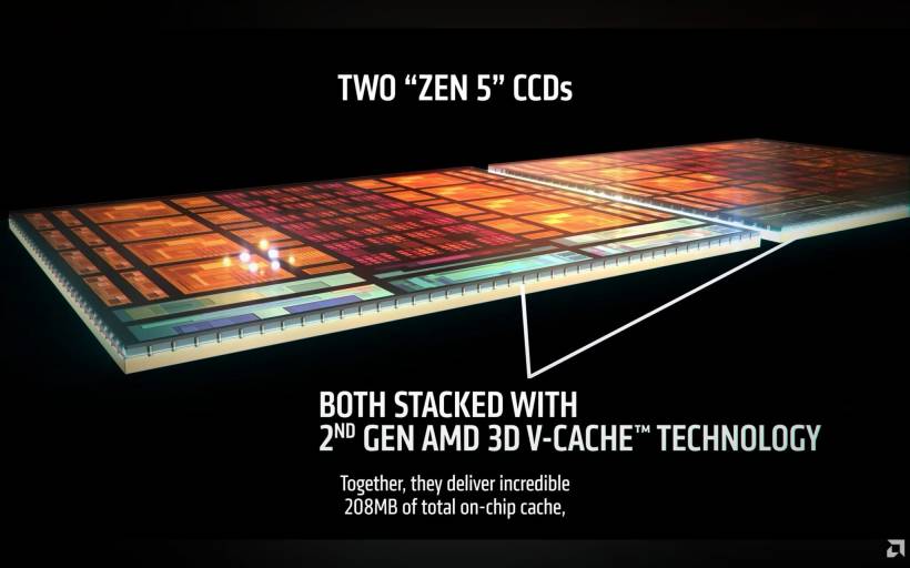 For the first time in AMD's Zen 5 lineup, both chiplets are stacked with 2nd Gen 3D V-Cache. That translates into a massive: