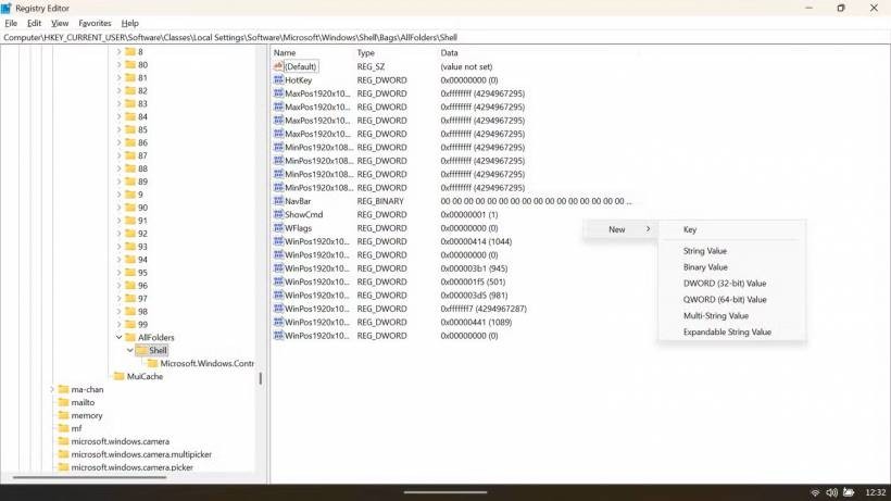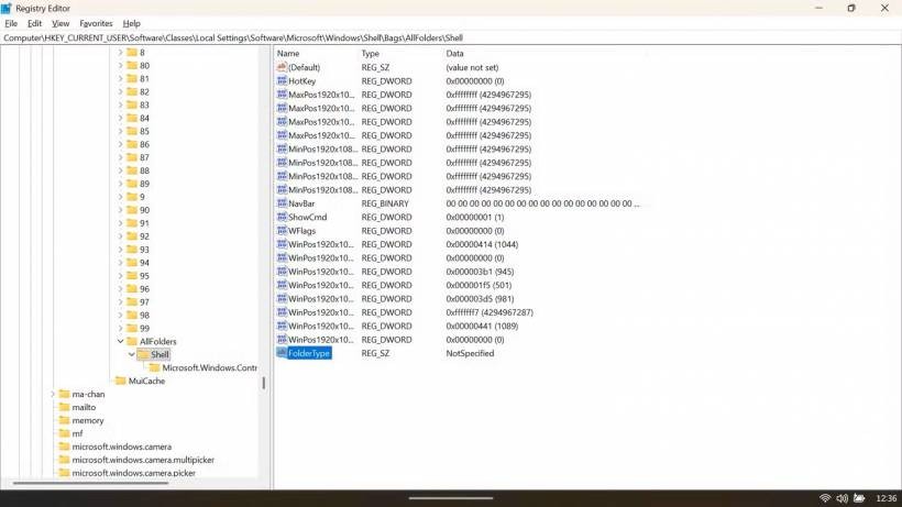 [HKEY_CURRENT_USER\Software\Classes\Local Settings\Software\Microsoft\Windows\Shell\Bags\AllFolders\Shell]