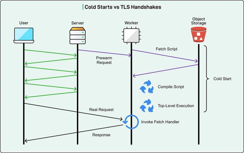 This worked well when cold starts were short and TLS handshakes were relatively long. In the best case, the Worker finished starting before the handshake completed, so the user didn't feel the cold start at all.